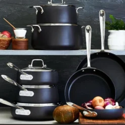 - 5-ply bonded construction with stainless steel, aluminum, and a thick copper core for fast and even heating, warp-free strength, and ultimate responsiveness