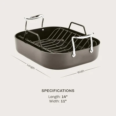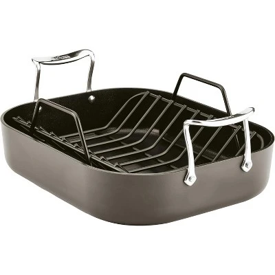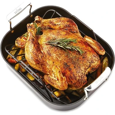 The roaster features a large cooking surface with tall walls which are ideal for easily roasting meats and vegetables.