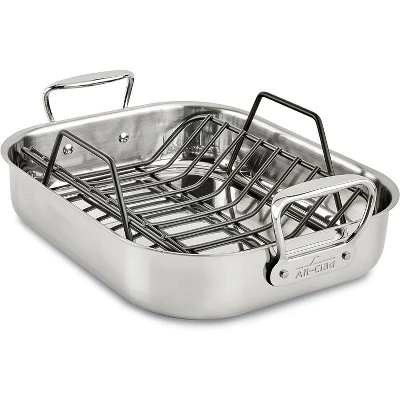 - Small 11-by-14-inch roasting pan with removable V-shaped nonstick roasting rack