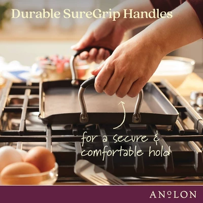 - OPTIMAL NONSTICK PERFORMANCE: Perfect for big breakfasts and brunches, the Anolon Advanced Home nonstick double burner griddle features ultra-durable nonstick release so your creations glide out of the pan easily for years to come.