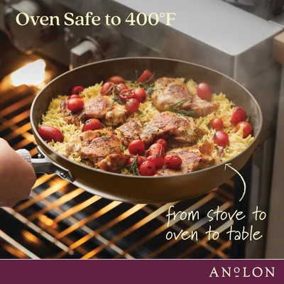 Aspiring stir fry chefs, your first step to sublime cooking starts here. This versatile Anolon Advanced Home stir fry pan provides one of the very best nonsticks in a carefully crafted kitchen essential designed to outperform, outlast, and outshine your current cookware. Engineered for fast, uniform heating, this hard-anodized stir frying pan is twice as hard as stainless steel for durability that lasts and features deep, sloped sidewalls that are perfect for tossing, stirring, and frying. Oven safe to 400°F, the wok features Infinity Slide technology for one of the longest lasting and smoothest-gliding cookware surfaces you can buy. If you expect more from your nonstick, welcome to the sublime cooking experience of Anolon Advanced Home.