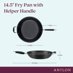 Sublime cooking starts here. Anolon Advanced Home provides aspiring chefs with one of the very best nonsticks on the market. Step up to a crafted collection of kitchen essentials designed to outperform, outlast, and outshine your current cookware. Engineered for fast, uniform heating, this large sauté pan with helper handle is twice as hard as stainless steel for durability that lasts. Oven safe to 400°F, this nonstick sauté pan with a convenient helper handle is designed for fast, high heat cooking and tossing and features Infinity Slide technology for one of the longest lasting and smoothest-gliding cookware surfaces you can buy. A tempered glass lid locks in heat and flavor, and the 5-quart size is perfect for big one pan meals. If you expect more from your nonstick, welcome to the sublime cooking experience of Anolon Advanced Home.