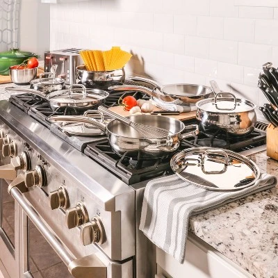 - Discover the key to well-maintained stainless steel cookware: let cool before washing, gently remove food residue and stains with a sponge or nylon scrubbing pad, wash with warm water and mild soap and steer clear of abrasive materials or harsh detergents. Dishwasher safe.