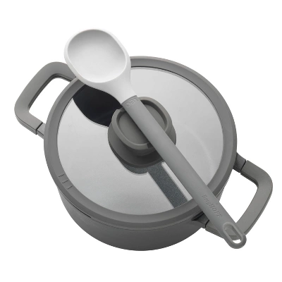 - Practical spoon rest feature allows you to conveniently rest your cooking spoon or utensil on top of the saucepan while you attend to other tasks in the kitchen. Its integrated draining hole that doubles as a steam vent. This clever design allows you to easily drain excess liquids from your cooked food without the need for a separate colander or strainer.