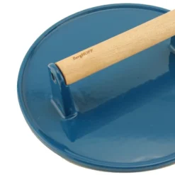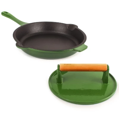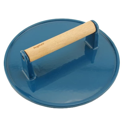 Cast iron has great heat retaining abilities and can be used on any heat source. Classic in a modern design, solid material for all your cooking needs! Oven safe up to 400°F. The steak press is made of heavy duty cast iron with hammered finish. You’ll appreciate the stay-cool bamboo handle. This handy cast-iron grill press is coated with vegetable oil and cured at high heat to allow the oil to deeply penetrate the cast iron. It comes pre-seasoned and ready to use right out of the box.