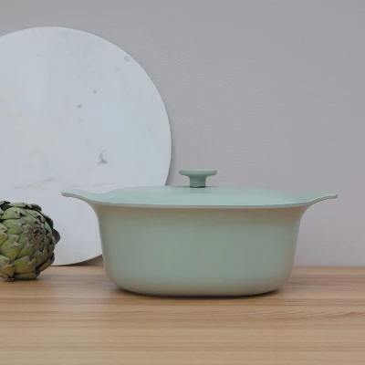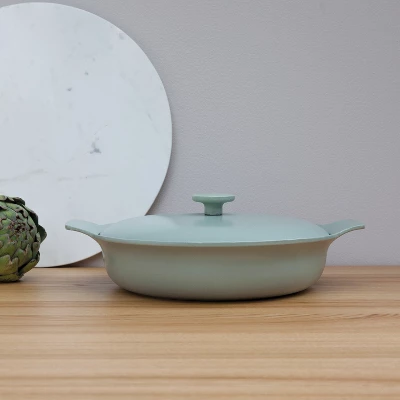 BergHOFF’s award winning Ron Enameled Cast Iron cookware is built to last for years to come. Crafted from durable cast iron with an enameled body this cookware heats up evenly and stays hot longer. The wide ergonomic handles provide a secure grip even when using oven mitts or potholders. Our 5pc set includes one 10″ fry pan, one 5.5qt covered dutch oven, and one 3.5qt covered deep skillet. Cook like a pro with the versatile dutch oven that can go effortlessly from browning on the stove top to roasting in the oven. Braise short ribs, make hearty stew, three bean chili, curry chicken, and so much more. With it’s deep sides, the Ron deep skillet is well suited for pan roasting and braising. The beautiful cast iron fry pan with its sturdy handle is another multipurpose tool in your kitchen arsenal. Use the fry pan to make succulent lamb chops, crispy bacon, and even a delicious cake. Fry pan has an integrated helper handle and a pour spout which allows you to easily drain any unwanted fat from the pan. Our Ron cast iron cookware is suitable for all cooktops including gas, electric, ceramic, glass, and induction. Most of the Ron cast iron cookware is also oven ready (this does not include fry pan or sauce pan that have wooden handle accents). You can sear your food on the stovetop, and finish in the oven. Please allow cookware to cool completely before attempting to clean. Handwash recommended with warm water and mild detergent; dry thoroughly. Avoid cleansers that contain bleach or citrus extracts.