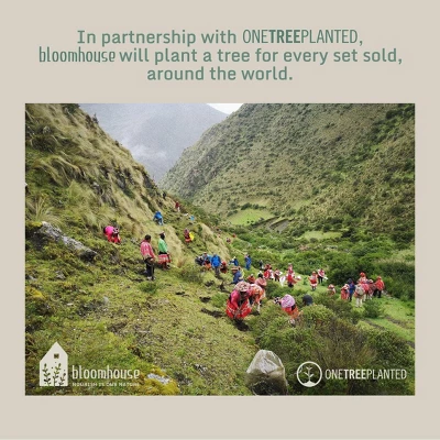 - * ONE TREE PLANTED PER SET SOLD: In partnership with One Tree Planted, bloomhouse™ will also plant a tree around the world for every set sold in an effort to keep our planet healthy and thriving and encourage acts of kindness and moments of growth.