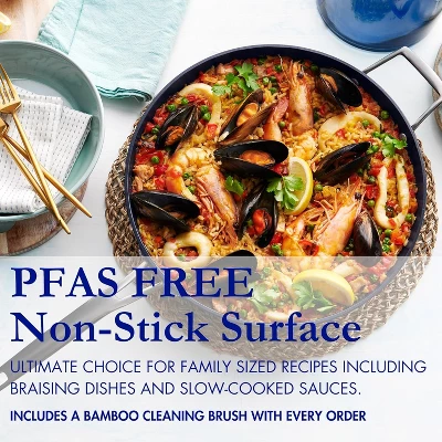- INCLUDED ACCESSORIES: Comes with a bamboo cleaning brush for effortless clean-up that won’t damage the non-stick coating. While our Blu. cookware is dishwasher-safe, we recommend hand washing to help extend its durability.
