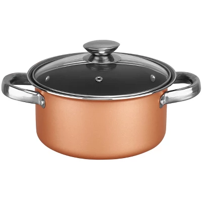 The Brentwood 9 Piece Cookware sets comes with all your cooking necessities. This set is complete with a 9.5inch fry pan, one 1quart saucepan with lid, two 2.6 quart casserole pots with lids, and one 3.2 quart casserole with lid. Each piece is finished with a nonstick coating that makes it easy to cook without the mess and makes for a quick and easy wash with no excessive scrubbing! Comfortable ergonomic handles and a lightweight aluminum construction. This beautiful copper cookware set adds a modern aesthetic to your kitchen. Dishwasher Safe for effortless cleanup.