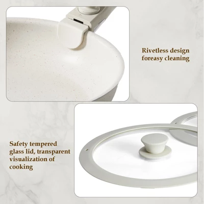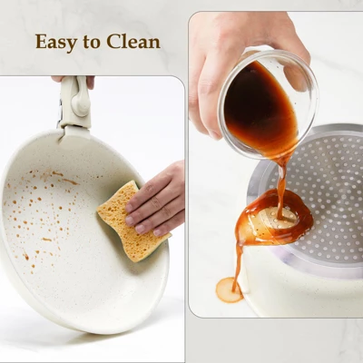 - Effortless Cleanup: Non-stick coating ensures food slides off easily, eliminating stubborn residues and saving time on cleaning while maintaining cookware appearance over time.
