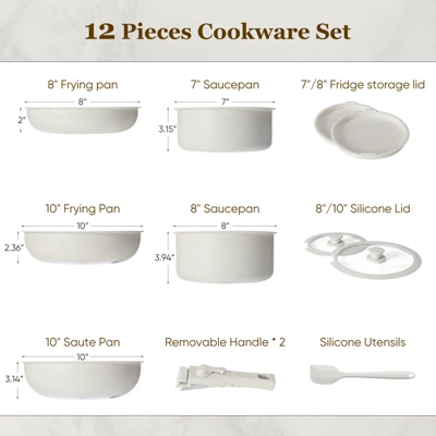 - Complete Cooking Set: Includes 12 pieces for all culinary needs—pots, pans, and a spatula. The versatile collection allows for sautéing, frying, boiling, and simmering, offering a comprehensive cooking solution.