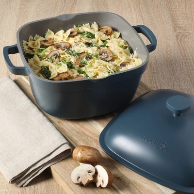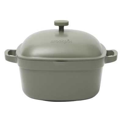 The Northvale Cast Aluminum Dutch oven from Crock-Pot™ has all the makings to become a home cook’s kitchen favorite. From its distinct, soft-square shape to its nonstick properties, this pot is ready to get to work and deliver the best family meals yet. Made for everyday use, this cookware can accommodate a variety of cooking styles such as braising, stewing, frying and sautéing. The cast aluminum construction provides excellent absorption and distribution of heat to ensure that fresh ingredients are evenly cooked and seasoned to perfection. As an added bonus, the matte, soft-square design is a nice, modern detail to update the look of any culinary and dining space it lands on. Its interior features a ceramic nonstick surface that has an easy-release property to help scoop, turn and handle ingredients without sticking and burning. Made without PFOA, PTFE, lead or cadmium, this Dutch oven helps serve healthier foods and feel-good flavors to win the hearts of your guests. While playing favorites in any situation is not the best practice (after all, frying pans and knives have feelings too!), this Dutch oven is one of the most dependable pieces of equipment a home cook can own. Oven safe up to 350²F. Dishwasher safe, hand wash recommended.Over the years, Crock-Pot™ has offered dependability and convenience to millions of homemakers, helping them serve up quick and delicious meals every day. From mom’s own recipes to your own take on a family favorite, this selection of “unplugged” cookware and bakeware continue to deliver the Crock-Pot™ promise of fresh flavors to enjoy and share around the table.The Northvale Cast Aluminum Dutch oven from Crock-Pot™ has all the makings to become a home cook’s kitchen favorite. From its distinct, soft-square shape to its nonstick properties, this pot is ready to get to work and deliver the best family meals yet. Made for everyday use, this cookware can accommodate a variety of cooking styles such as braising, stewing, frying and sautéing. The cast aluminum construction provides excellent absorption and distribution of heat to ensure that fresh ingredients are evenly cooked and seasoned to perfection. As an added bonus, the matte, soft-square design is a nice, modern detail to update the look of any culinary and dining space it lands on. Its interior features a ceramic nonstick surface that has an easy-release property to help scoop, turn and handle ingredients without sticking and burning. Made without PFOA, PTFE, lead or cadmium, this Dutch oven helps serve healthier foods and feel-good flavors to win the hearts of your guests. While playing favorites in any situation is not the best practice (after all, frying pans and knives have feelings too!), this Dutch oven is one of the most dependable pieces of equipment a home cook can own. Oven safe up to 350²F. Dishwasher safe, hand wash recommended.Over the years, Crock-Pot™ has offered dependability and convenience to millions of homemakers, helping them serve up quick and delicious meals every day. From mom’s own recipes to your own take on a family favorite, this selection of “unplugged” cookware and bakeware continue to deliver the Crock-Pot™ promise of fresh flavors to enjoy and share around the table.* FROM THE ORIGINAL FAMILY OF SLOW COOKERS: This 5.2-quart cast aluminum Dutch oven is from the original line of Crock-pot™ slow cookers that have graced home kitchens for over 40 years. The Northvale collection offers the versatility required to simmer, sauté, braise, bake and serve everyday meals in beautifully coated, matte-finished pots and pans. * MADE FOR EVERYDAY COOKING: Cast aluminum cookware provides excellent heating to deliver evenly cooked dishes. Built for durability and everyday use, this pot features a special, soft square shape to accommodate more ingredients and family-style servings of stews and soups. The four, rounded corners function as gentle pour spouts to smoothly transfer the last bits of food or excess oils into another container. * HEALTHY NONSTICK COATING: Made without PFOA, PTFE, lead, cadmium or other “forever chemicals”, the ceramic nonstick coating offers a healthier alternative to cooking. The smooth interior has an easy-release property to help food slide off the nonstick surface when it’s time to mix, scoop and clean. * COOK AND CARRY: Sturdy handles offer a comfortable and balanced grip to easily transition from prepping and cooking to serving and entertaining.* INDUCTION SAFE: Compatible with induction, gas, electric, halogen and ceramic stovetops * SELF-BASTING LID: Raised nubs are intentionally crafted underneath the cast iron lid to create a rich, self-basting environment. As the lid allows heat to circulate and retain steam, the nubs collect the moisture during condensation, then redirects it back onto the food to cook low-and-slow recipes with fall-off-the-bone results.* PUT A BOW ON IT: Wrap and put a bow on this beautiful piece of cookware to give as a birthday, anniversary or housewarming gift. Throw in a few cooking tools, a cookbook or a pair of oven mitts for good measure!