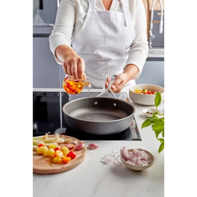 Demeyere infuses its cookware expertise into this ultimate nonstick collection. AluPro’s innovative 5-layer Ti-X coating features three layers of enhanced nonstick coating, a Plasma Primer for superior resistance to metal utensils, and a protective layer that prevents peeling, blistering, corrosion and abrasions. Quick releasing and easy to clean, this high-performance, PFOA-free coating will last for a long time.Made from extremely pure aluminum, the 5mm thick cold forged body heats up rapidly and evenly for perfect frying and even browning. Lightweight aluminum eliminates arm strain along with the ergonomic stay-cool handles that are comfortable to grip. Along with flared rims that prevent pouring spills, these user-friendly details make these nonstick pans ideal for everyday use.AluPro works all cooking surfaces – gas, electric, glass, and induction. TriplInduc technology by Demeyere makes this aluminum pan induction compatible and 30% more efficient than competitors. The durable Ti-X non-stick coating makes this pan oven and broiler safe up to 500F.