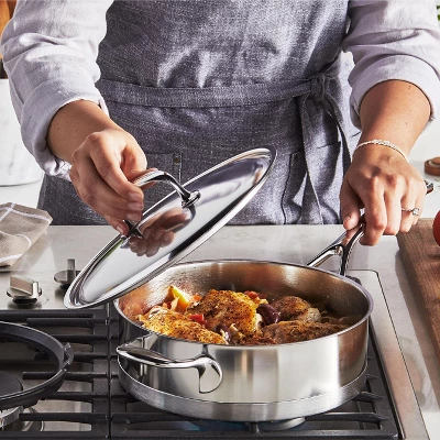 - Set includes 2.3-qt saucepan with lid, 3.5-qt saucier with lid, 5-qt saute pan with lid, 8.9-qt Dutch oven with lid, and 11″ Proline fry pan