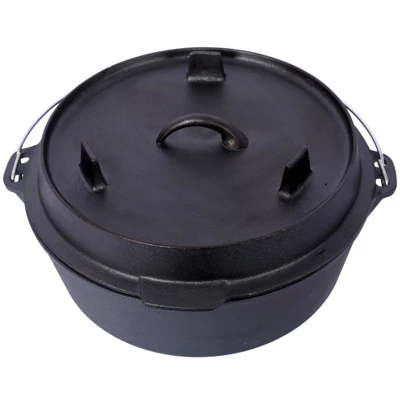 - 2-in-1 Lid Functionality: The lid features built-in legs, transforming it into a skillet or griddle for frying foods directly over campfires. Enjoy versatile cooking without extra utensils.