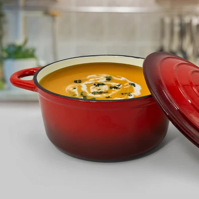 Made of high quality cast iron with a beautiful enamel finish this cookware looks great in the kitchen or on the dining room table. Whether it’s a slow-simmered flavorful stew a lovely lasagna or a comforting cheesy potato casserole this heavy duty pan can fulfill all of your cozy home cooking needs. The cast iron design delivers superior heat distribution and the interior enamel coating provides a hassle-free non-stick layer. Can be used on the stove in the oven or for storing leftovers in the fridge.