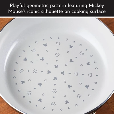 - THE MAGIC OF DISNEY: This 8-inch ceramic nonstick frying pan features a playful monochromatic pattern with Disney Mickey Mouse’s iconic silhouette printed on the cooking surface