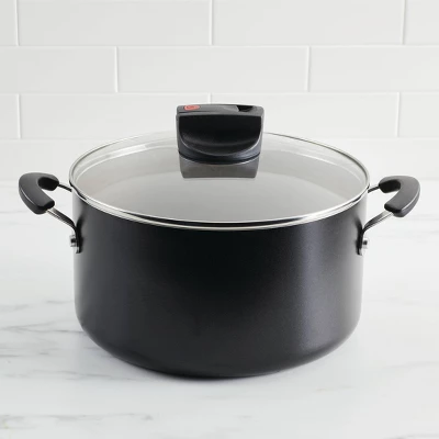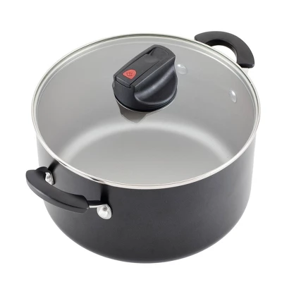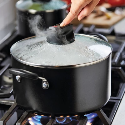 - IN CONTROL COOKWARE: Farberware Smart Control stockpot features a tempered glass lid with an innovative vent in the knob for easy steam release and fewer boil-overs