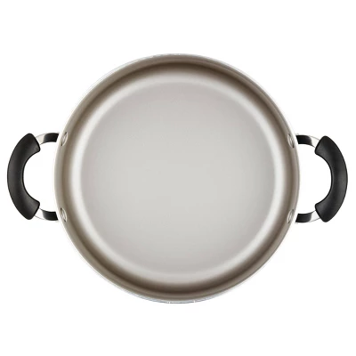 Cook safer with fewer boil-overs when cooking with the Farberware Smart Control Nonstick Stockpot with Lid. This durable aluminum pot features a trimmed base for quicker heat conduction and is finished with DiamondMax nonstick technology that performs 3X better than traditional nonstick. The tempered glass lid boasts an innovative Smart Control(tm) steam vent in the knob to help release steam and prevent boil-overs on the cooktop when cooking big one-pot meals for the family. This smartly designed stockpot makes a great chili pot or lobster pot and is oven safe to 350°F and dishwasher safe for a quick cleanup.