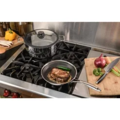 The Ultimate Cooking Surface A worlds first: Black Cube; combines all the benefits of stainless steel and nonstick cookware. Imagine a nonstick fry pan that is safe for use with metal utensils and can brown like a stainless steel fry pan!This revolutionary new cooking surface cooks food on raised stainless steel pixels over a recessed layer of nonstick coating, allowing for browning without sticking. The unique nonstick surface is also safe for metal utensil use.Black Cube; is built to last with its 3-ply construction and the high quality nonstick layer. All pans work on any cooktop and are oven safe up to 500° F. For ultimate convenience they are also dishwasher safe.
