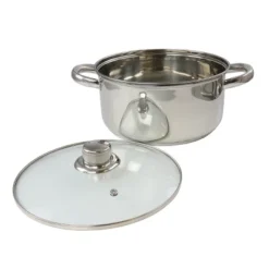 Cook up all your favorite meals with this Gibson Home 5 Piece Mirror Polish Stainless Steel Cookware Set. In this set, you’ll find one dutch oven with lid, one saucepan, one spoon, and one spatula. With pots made from durable, lightweight stainless steel, this cookware is built to last. The cookware features hollow stay-cool handles and the included lid is tempered glass. The base is aluminum encapsulated making for optimal heat distribution while cooking. This set has all you need for many recipes making it perfect for a housewarming gift or even those looking to update their cookware.