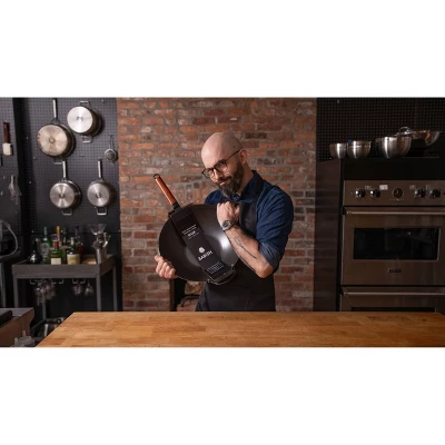 Reach food influencer-slash-guru status with the Babish 14-inch Carbon Steel Wok. Made from strong carbon steel, this piece distributes heat evenly and is perfect for frying and stir-frying. Over time, it absorbs oil, creating a patina to build a naturally nonstick capability for easy food release and cleanup. It features a hybrid shape with a sturdy, flat bottom that rests well on the grill and on any stovetop. Riveted handles offer safe and secure grip for easy transport from stovetop to table. With proper care and seasoning, this piece will serve up delicious meals for years. Handwash only.