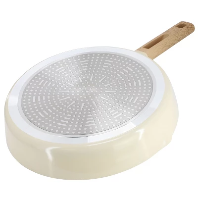 The frying pan also boasts a comfortable straight handle adorned with a chic faux wood finish, adding both functionality and elegance to your kitchen. Its unique speckled interior detail enhances its aesthetic appeal, while being dishwasher safe allows for easy maintenance-though hand washing is recommended to preserve its beauty. Compatible with all stovetops, including gas, halogen, induction, electric, and vitroceramic, the Gibson Home Marbleton Frying Pan is a versatile and essential addition to your kitchen arsenal. Elevate your cooking experience today with this stylish and functional frying pan!