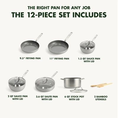 Designed for daily life, this metal utensil safe set features a diamond-enhanced ceramic nonstick coating that delivers ultra-fast performance and effortless nonstick release. And it has everything you need to make everything from elegant experiments to tried-and-true classics.