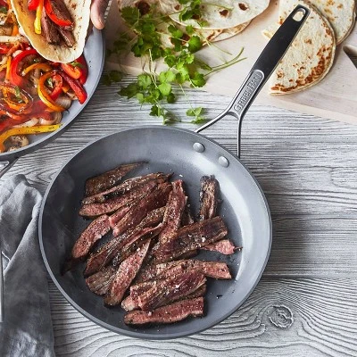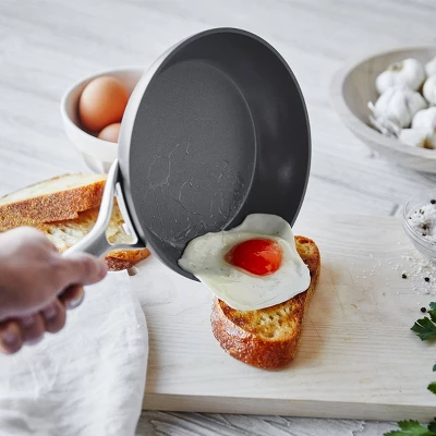 Featuring GreenPan’s signature healthy ceramic nonstick coating, the Paris Pro collection is twice as strong as stainless steel thanks to hard anodized aluminum bodies (plus it’s metal utensil safe). Made to last, it won’t warp, chip, or scratch and it’s free of PFAS, PFOA, lead, and cadmium, too. For searing, sautéing, and more this versatile 8” frypan is equipped with a riveted oven-proof stainless steel handle for a secure grip.