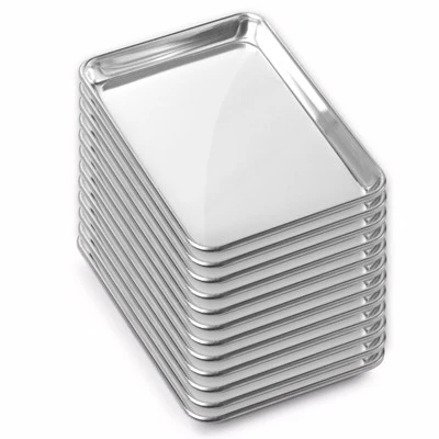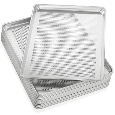 Excellent performance – Aluminum pans provide even heat distribution as well as quick heating and cooling Convenient – Great for cooking large amounts of food Lightweight – Easy to move around Galvanized wire edge – 1.0 mm thick rim that prevents warping and keeps the pan flat Sturdy – Each tray is 18 gauge commercial grade aluminum (beware of thinner models) Includes: baking sheets
