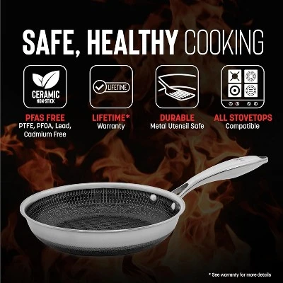 - CERAMIC NONSTICK: Hell’s Kitchen Tri-Clad Hybrid cookware contains a diamond reinforced PFAS-FREE ceramic nonstick, silver-ion charged for healthy cooking.