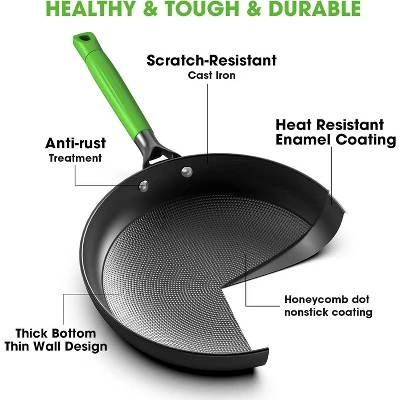 Cast Iron & Non-stick Innovative Design¡êoNon-stick frying pans also maintain even heat distribution and excellent heat retention. The skillet’s thin-walled, thick-bottomed design gives you a lighter and easier cooking experience than other traditional cast iron pans Uniquely Frying Pan With Lid¡êoimarku frying pan is their fusion of cast iron and non-stick technology, combining durability with a superior non-stick surface while extending the life of your cooking pan. The 2 air outlet grooves on the edge of the pot lid are designed prevent soup from overflowing and the tempered glass lid can maintain high visibility. The thin-walled and thick-bottomed design gives you a lighter and easier cooking experience than other traditional cast iron pans Keep Cool Removable Handle¡êoFeatures a fireproof and stay cool ergonomic handle for a safe and comfortable cooking life. The frying pan features a removable rubber wood handle designed for stability, comfort, style and durability. You can easily install and remove the storage, saving over 55% of your kitchen space. In addition, the frying pan handle is equipped with a trapezoidal hanging hole design, making it easy to hang the non-stick pan and saving kitchen space High Compatibility & Easy To Clean¡êoThe upgraded non-stick frying pan with lid is suitable for a variety of cooking methods, including deep-frying, boiling, stirring and grilling. Work on all cooktops including Halogen Stoves, Gas, Ceramic, Oven and Induction.The non stick frying pan is dishwasher safe, but hand wash is recommended for maximum longevity. (note: handle should be removed before placing in the dishwasher & oven ) Buy With Confidence¡êoimarku is dedicated to enhancing your user experience. Our professional non stick skillet comes with an exquisite package that makes a perfect gift for holidays and friends. We provide 24*7 customer service ensures quick resolution of any issues