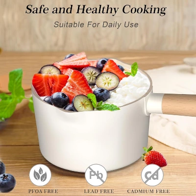 Multi-Functional Design: Our 1.6 QT saucepan is ideal for preparing sauces, pastas, meats, vegetables or even reheating any leftovers. Spouts on both sides make it easy to pour sauces, oils or liquids out of the sauce pan with lid. The perfect choice to cook your favorite food for the people you love, making it a reliable addition to your kitchen Super Non-Stick Cooking Pot: Our saucepans coating does not contain PFOA, using less oil or butter can cook healthy and delicious food. Super non-stick performance with a smooth interior that slides food easily, just wipe gently with a rag and minimal detergent to clean. The transparent glass lid helps you to better observe the food and achieve the best cooking results Removable Wood Handle: Exclusive design of the wooden handle can be removed, and the cooking pots can be put into the oven (below 500¡§H) after removing the handle. Professional ergonomic design allows fingers to grip more easily and comfortably, and the wood material is cool and avoid burning. The loop at the end of the handle allows the saucepan to hang from the wall, helping you free up more storage space Cooktops Compatible: Durable three-layer stainless steel and metal bottom structure, excellent thermal conductivity of our small pot helps food heat quickly and evenly, preventing hot spots. Strong induction capable and suitable for electric pottery stove, gas stove, halogen stove and other stoves, saving time and energy Easy To Clean – Hand wash is recommended for maximum longevity. Simply rinse with water and mild detergent to quickly remove stains. Tips: Cool the saucepan before washing to extend the coating life, when installing the handle, please snap it slightly upwards into the groove so that the wooden handle is in close contact with the pan Best Gift & Customer Service: imarku provide a 24 customer service ensures quick resolution of any issues, making it an excellent choice for personal use or as a gift for friends, Christmas gifts for women or man
