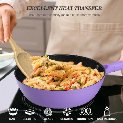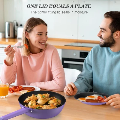 Healthy Nonstick frying Pans: Double-layer water-based non-stick coating, the healthy interior pan is free of PFOA, PFOS, or other harmful materials. Little or no oil is enough for this nonstick skillet to cook the food without sticking to the bottom, helping to reduce fat intake. Ergonomic Removable Handle: Made from heat-resistant bakelite, the deep saute pan handle stays cool during cooking. Save kitchen space up to 50% with the removable handle design. The detachable handle is easy to install and remove, just twist and twist, only takes 5 seconds. Multipurpose & Durable Skillet with Lid: Deep enough to roast a chicken. This 4 QT deep frying pan can braise, sear, steam, fry, boil, bake, serve, and grill¡does it all. The unique lid shape allows it to turn into a plate on your dining table. Sturdy enough to avoid distortion while lightweight body to easily hold. Excellent Heat Conduction: The professional-grade aluminum core makes this non stick kitchen pans heat quickly and evenly, helping reduce hot spots that can burn foods, and preserving the original nutrition. All make this 11 inch cooking pan offer you optimal cooking performance. Versatile Cookware: This large saute pan with lid is oven safe up to 428¡ã F. Compatible with all stovetops including gas, electric, glass, and induction tops. The premium nonstick surface brings effortless clean-up, and most messes are wiped away. Trustworthy Brand: We guarantee a 100% free refund or replacement. If you have any problems while using our products, please feel free to contact us, we will be happy to help you. Exquisitely packaged in a gift box, imarku professional frying pan is perfect as a gift.