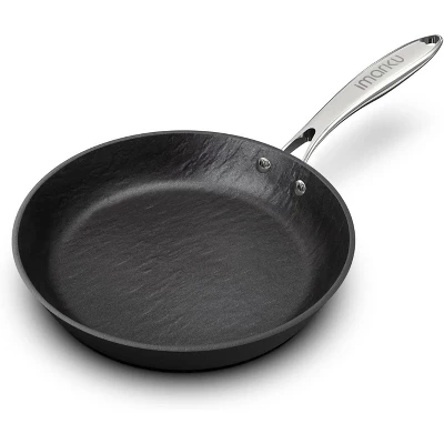 I: Efficient & Even Heat Conduction – The high-quality cast iron pan have the advantages of fast heat conduction and even heating. Its excellent heat retention will keep your food warm for a long time. At the same time, the honeycomb better distributes the oil in the pot evenly in the frying pan nonstick of the honeycomb, cooking with less oil helps to reduce fat intake, better exert the characteristics of the ingredients. and improves the health of life and the quality of food. Make omelets so easy. It also can be a pizza pan, whether you use it to fry pizza or steak, it will offer you the most delicious experience.II: Pro-Safely & Versatile for Various Stove – cast iron cooking utensil is designed to fit all types of stoves such as ceramic, electric, gas, grill and induction, even in the oven. With a practical size of 10 inche, it is incredibly practical for personal or family use. Cook with confidence as the non stick frying pans can safely withstand temperatures up to 500 degrees Fahrenheit. Whether you’re frying, lightly pressure cooking, grilling, etc., these nonstick frying pans set are perfect for all your culinary needs. It’s also portable! When travel with family or friends, or during outdoor picnics, Imarku pans offer excellent portability and are compatible with a variety of stoves, enabling the convenient preparation of delicious meals in outdoor environments.III: Easy To Clean & Dishwasher Safe – The seamless rivet design avoid dirt and grime buildup, Simply rinse with water and mild detergent to quickly remove stains. The non stick frying pan set are dishwasher safe, but hand wash is recommended for maximum longevity. (note: handle should be removed before placing in the dishwasher). IV: Advanced Healthy Nonstick Coating – Engineered with a reinforced nonstick honeycomb surface, our skillet requires minimal oil for perfectly released food. Free of PFAS, PFOA,prioritizing your health without compromising performance. V:Ergonomic Grip & Effortless Cooking – The ergonomically designed and silver handle is contoured to fit the natural shape of your hand, significantly reducing hand and wrist strain. It provides a secure, non-slip grip even when your hands are wet or greasy, offering superior control and confidence while tossing, stirring, or flipping.The pan is expertly balanced with the weight distributed evenly between the handle and the base. This design prevents the pan from feeling tip-heavy or cumbersome, making it easy to maneuver and lift, which minimizes arm fatigue during longer cooking sessions.he premium non-stick interior ensures food slides out perfectly without sticking or burning. This allows you to cook with minimal oil or butter and makes cleanup remarkably quick and easy, often requiring just a simple wipe with a soft sponge.VI: Reliable – 1 Year Warranty Backed by a 12-month quality guarantee. Our imarku team ensures prompt replacements or refunds for any manufacturing defects. We provide 24*7 customer service ensures quick resolution of any issues, making it an excellent choice for personal use or as a gift for friends.
