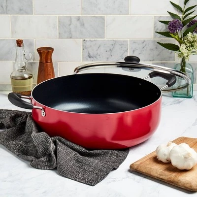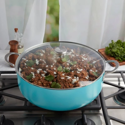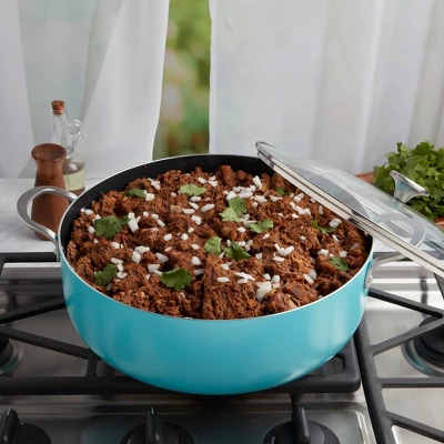 INFUSE brings the intense flavors of Latin cuisine to your kitchen with a cookware collection that celebrates the cultural significance of Latin cooking. Our assortment is designed to honor the rich history of the cuisine and bring out the delightful aromas and delicious flavors that have made the food so popular worldwide. Whether you’re cooking rice, braising meat, or simmering a stew, grab a reliable caldero and enjoy an authentic and deliciously prepared meal. This caldero, from the Spanish ‘cauldron,’ features rounded sides that are built to handle a wide variety of recipes, similar to a saute pan. This beautiful 6-quart yellow caldero is dependable and versatile, made of durable aluminum that heats up quickly and evenly, and finished with a premium non-stick coating for excellent food release and easy cleanup.