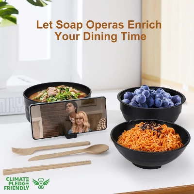 Discover this amazing ramen bowl set! With a 33 oz capacity, it’s a versatile all – in – one microwave solution. It can hold up to two packs of noodles, perfect for making instant ramen, soups, or pasta. The bowl is made from certified recycled wheat straw, which is odorless, climate – friendly, lightweight, and portable. Its unique side handle stays cool during use, allowing for safe and easy handling right from the microwave. Moreover, the handle doubles as a phone holder, so you can enjoy hands – free entertainment while having your meal. To use, simply place the draining bowl inside the large one, add noodles, pour boiling water, cover with the small bowl (which also serves as a lid), microwave, strain, and your delicious ramen is ready in minutes. This set is a must – have for students in college dorms, busy professionals in the office, or anyone looking for a quick and easy meal solution at home or while camping.