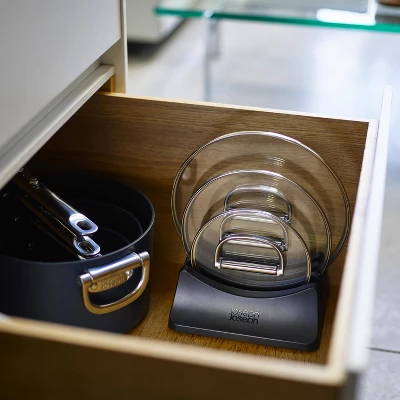 - Set includes: 15 cm (1.4 qt) non-stick saucepan with lid; 19 cm (2.9 qt) non-stick saucepan with lid; 23 cm (5.4 qt) non-stick saucepan with lid; pan-lid stand for three lids; 2x felt pan protectors
