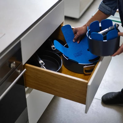 Goodbye clutter, hello Space! The non-stick saucepans in this 3-piece cookware set nest neatly together and feature clever, folding stainless- steel handles that save up to 50% more space than standard pans when stored. Engineered to last, the handles feature our patented and fail- safe SwingLock™ Mechanism that locks the handles securely into position during use and optimises space when folded. When it comes to cooking performance there’s no compromise either. Professional quality, heavy- gauge aluminium bodies ensure even heat distibution that eliminates hot spots and are built to last. The high performance, ceramic non-stick coating is super durable, easy to clean and allows you to achieve exceptional cooking results. It’s healthier to cook with too as it’s free from PTFE, PFAS, PFOA, Lead and Cadmium, which means you can prepare all your favourite recipes with confidence. Each pan comes with a tempered glass lid that also has a folding handle, a smart pan-lid stand and a pair of felt pan-protectors, making compact storage even easier. Suitable for all stove, including induction, these pans are part of the Space cookware range – created for cooks, made for storage.