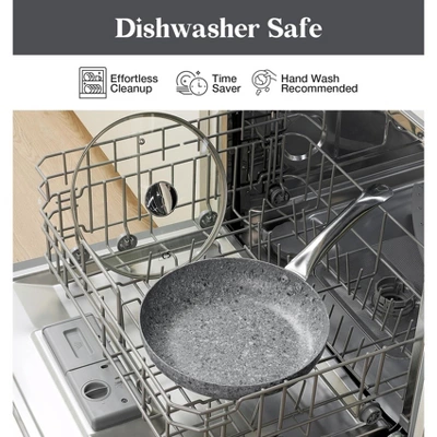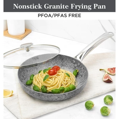 Nonstick Coating-German-engineered stone coating completely free of APEO, PFOA, and other harmful chemicals. Aluminum for Perfect Heating-Forged aluminum alloy core ensures lightning-fast heat spread with zero cold spots.Oven-safe to 450°F for versatile cooking—sear, bake, or broil with consistent results every time.Works on All Stovetops Including Induction-Multi-layer magnetic base seamlessly adapts to induction, gas, electric, and ceramic cooktops.Ergonomic Stainless Steel Handle-Riveted stainless steel handle stays cooler longer and provides a secure, comfortable grip.