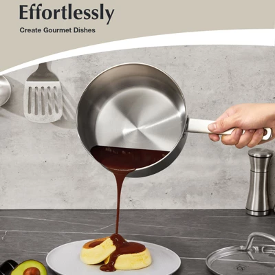- Dishwasher Safe with Drip-Free Pouring – Built for convenience, all pieces of pots and pans set are dishwasher safe for easy cleaning. Flared rims are designed for smooth, mess-free pouring, making your kitchen routine faster and cleaner