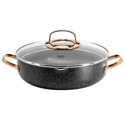 Complete all your favorite meals and more with the Galaksi 7 Piece Non Stick Aluminum Cookware Set in Black. This set comes with all the essentials for your every day cookware needs, including one 8in casserole, one 9.5in casserole, one 10in low casserole, and one 10in frying pan. Each piece in this set is designed with a Volcanic-looking PTFE coating with excellent non-stick properties, making low fat cooking and easy clean up possible. Made with PFOA, cadmium, and lead free materials for a healthy and sustainable long term solution to providing the very best for your family. Features a scratch resistant surface, and a Solar Base base system that provides the highest heat transfer on all types of stoves, including induction. Offer your family the very best with this durable, versatile and convenient all in one cookware set!