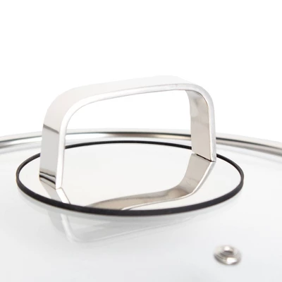 Our matching tempered glass lids with steam release vent for easy viewing, and cool touch handle is crafted with a silicone rim to lock-in the heat and act as insulation