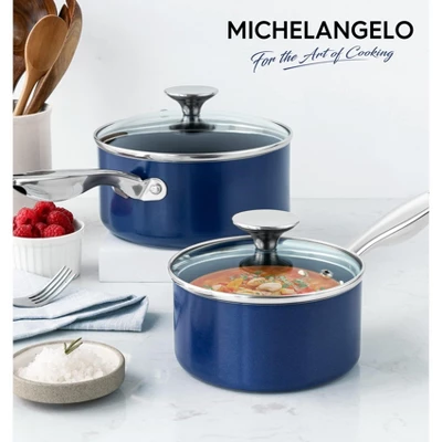 - STUNNING KITCHEN ARTWORK – This saucepan set looks exquisite and complements any kitchen décor. Its blue exterior ceramic resists chipping and cracking. You will certainly want to serve from these beautiful sauce pans!