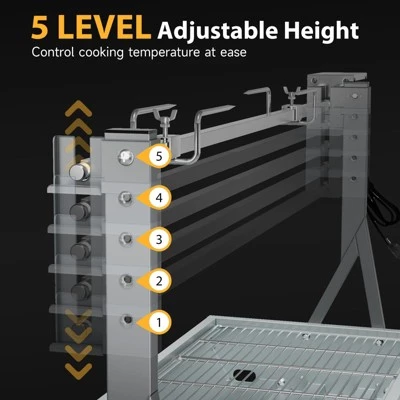 - Adjustable Spit Height: 4.5″-14″ (Four Level to Adjust)