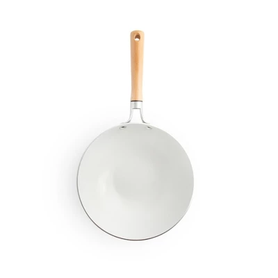 Make stir-frying a joy with the 10 Inch Cardamom Wok, crafted to combine the best of performance and design. The flared sides make tossing ingredients easy, while the ceramic nonstick finish ensures flawless release and minimal cleanup. Styled with Scandinavian sophistication and constructed for daily durability, this aluminum wok with natural wood handle is a modern essential. Compatible with gas, electric, and ceramic stovetops..