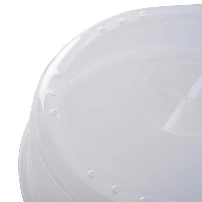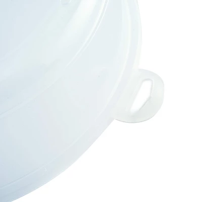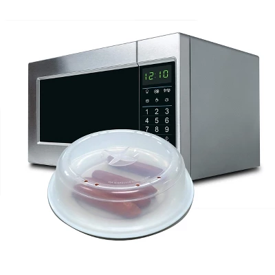 This handy kitchen tool helps keep your microwave clean by containing splatters while also ensuring even cooking and keeping food warm.Steam vents release excess moisture to prevent a soggy or rubbery texture.Reusable – An eco-friendly alternative to disposable options like paper towels or plastic wrap.Includes hang tag for easy storage.Top rack dishwasher safe.Do not use in a conventional oven, with a browning dish, element, or hot plates.Do not use abrasive tools to clean the cover. Wash thoroughly before use.Be careful handling the lid (May be hot after prolonged use).Foods with a high fat content may discolor the cover.11.25″/ 28.5cm with hangtab,10″/ 25.5cm diameter x 3″/ 7.5cm high, covers plates up to 9.5″/ 24cm wide.10″/ 25.5cm diameter x 3″/ 7.5cm high, covers plates up to 9.5″/ 24cm wide.Avoid messy splatters and keep microwave oven clean.Promotes even cooking.Steam vents release excess moisture and prevents soggy or rubbery textures.Reusable, BPA free