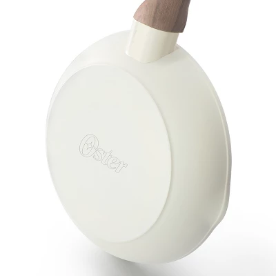 Introducing the Oster Amberg Choice 9.5 Inch Ceramic Nonstick Forged Aluminum Frying Pan, the pinnacle of cookware for your home kitchen. Crafted from heavy-gauge forged aluminum with a matte finish, this round pan boasts superior durability and heat distribution. Its wood-like Bakelite handle not only offers a comfortable grip but also adds a touch of elegance to your cooking experience. Equipped with dual pour spouts, this versatile frying pan ensures effortless pouring without the mess, making it ideal for a range of stovetops including gas, halogen, electric, and vitroceramic.