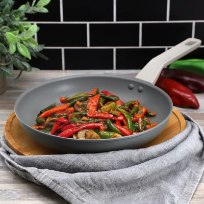 The advanced nonstick coating allows for easy food release and hassle-free cleanup, making it ideal for everything from frying eggs to searing vegetables. The sleek matte grey finish adds a modern touch to your cookware collection while resisting scratches and stains for long-lasting performance. Equipped with a comfortable, heat-resistant handle, this frying pan offers a secure grip and easy maneuverability. Compatible with all stovetops, including gas, electric, gas, halogen, induction, and vitroceramic, it’s a practical choice for any cooking environment. Elevate your culinary creations with the Oster Ambrose Frying Pan, where style meets function in every delicious meal.