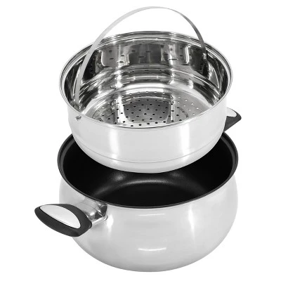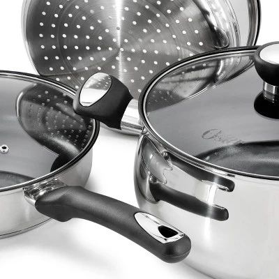 The Oster Baldwyn 10 Piece Stainless Steel Belly-Shaped Nonstick Cookware and Utensil Set embodies the perfect blend of style and functionality for any kitchen enthusiast. Crafted with durable stainless steel, each piece is designed to withstand daily use while maintaining its elegant appearance. The belly-shaped design ensures efficient heat distribution for uniform cooking results, while the nonstick interiors make cleanup a breeze.